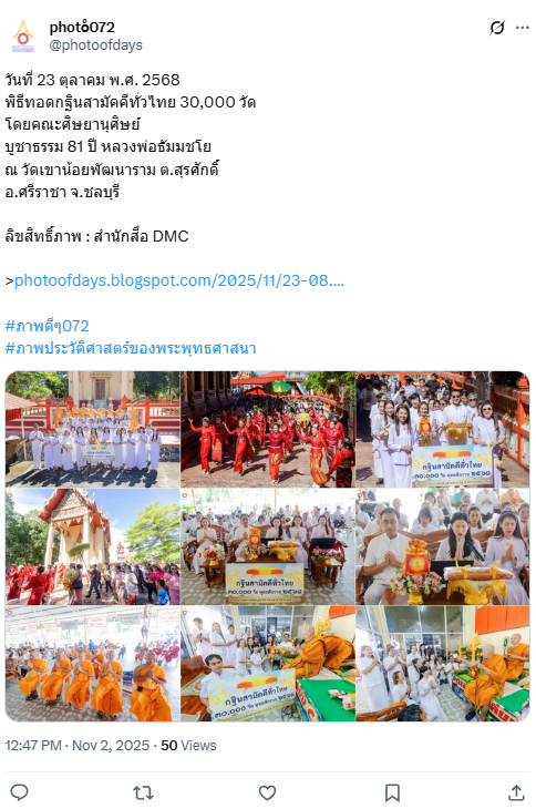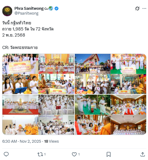 2 พ.ย. 2568 กฐินทั่วไทย วัดพระธรรมกายถวายกฐิน 1,985 วัด ใน 72 จังหวัด