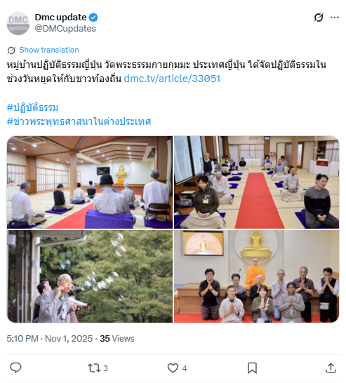 หมู่บ้านปฏิบัติธรรมญี่ปุ่น วัดพระธรรมกายกุมมะ ประเทศญี่ปุ่น ได้จัดปฏิบัติธรรมในช่วงวันหยุดให้กับชาวท้องถิ่น