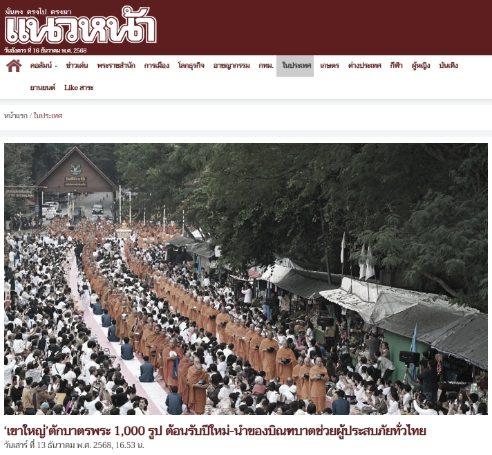 เขาใหญ่ ตักบาตรพระ 1,000 รูป ต้อนรับปีใหม่-นำของบิณฑบาตช่วยผู้ประสบภัยทั่วไทย