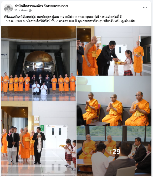 พิธีมอบเกียรติบัตรแก่ผู้ผ่านหลักสูตรพัฒนาความดีสากล คณะครูและผู้บริหารเนปาลรุ่นที่ 3
