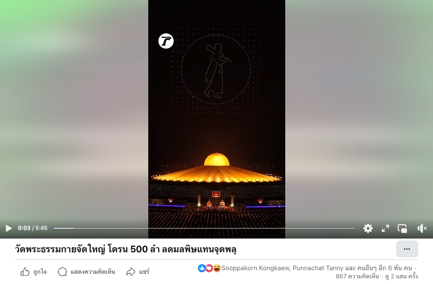 วัดพระธรรมกายจัดใหญ่ โดรน 500 ลำ ลดมลพิษแทนจุดพลุ