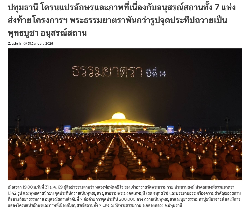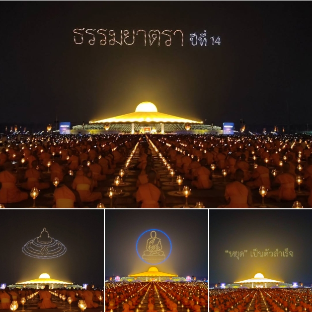 บินโดรนแปรภาพบนท้องฟ้าส่งท้ายธรรมยาตรา ปีที่ 14 ณ วัดพระธรรมกาย