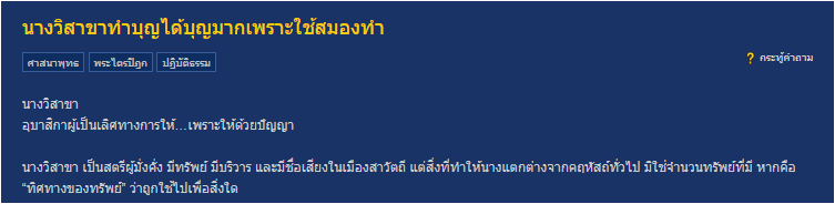 นางวิสาขาทำบุญได้บุญมากเพราะใช้สมองทำ