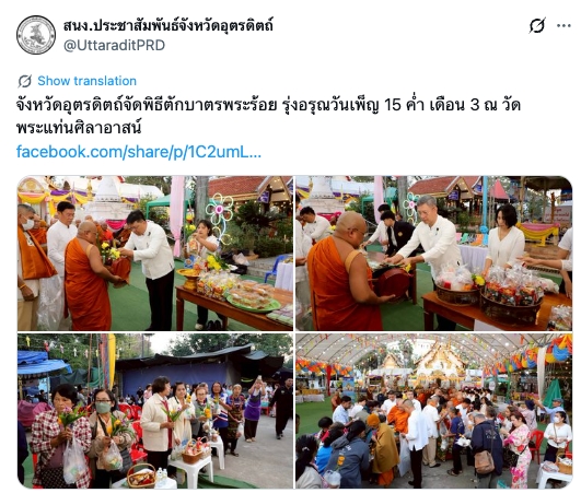 จังหวัดอุตรดิตถ์จัดพิธีตักบาตรพระร้อย รุ่งอรุณวันเพ็ญ 15 ค่ำ เดือน 3 ณ วัดพระแท่นศิลาอาสน์