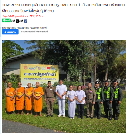 วัดพระธรรมกายหนุนสอบคัดเลือกครู ตชด. ภาค 1 เสริมการศึกษาพื้นที่ชายแดน ฝึกธรรมะเสริมพลังใจผู้ปฏิบัติงาน
