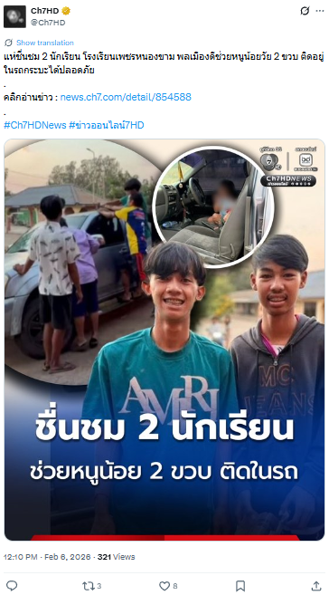 แห่ชื่นชม 2 นักเรียน โรงเรียนเพชรหนองขาม พลเมืองดีช่วยหนูน้อยวัย 2 ขวบ ติดอยู่ในรถกระบะได้ปลอดภัย