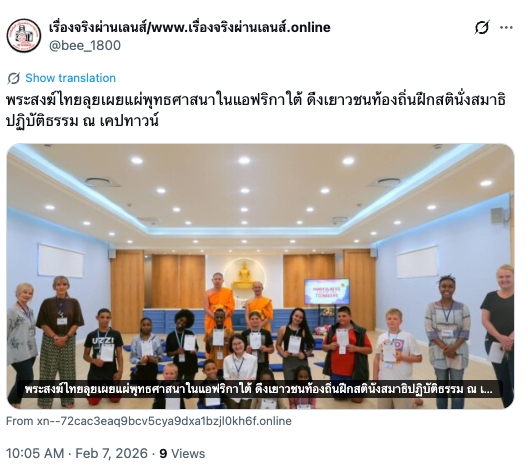 พระสงฆ์ไทยลุยเผยแผ่พุทธศาสนาในแอฟริกาใต้ ดึงเยาวชนท้องถิ่นฝึกสตินั่งสมาธิปฏิบัติธรรม ณ เคปทาวน์