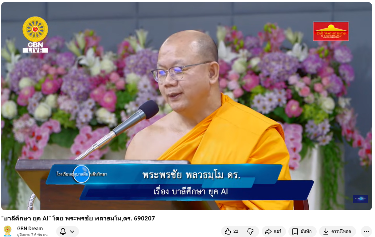 บาลีศึกษา ยุค AI” โดย พระพรชัย พลวธมฺโม,ดร.