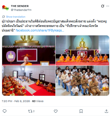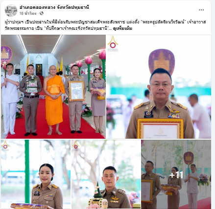 ผู้ว่าปทุมฯ เป็นประธานในพิธีต้อนรับพระบัญชาสมเด็จพระสังฆราช แต่งตั้ง พระครูปลัดรัตนวีรวัฒน์ เจ้าอาวาสวัดพระธรรมกาย เป็น ที่ปรึกษาเจ้าคณะจังหวัดปทุมธานี”.