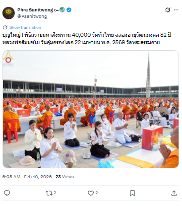 บุญใหญ่ ! พิธีถวายมหาสังฆทาน 40,000 วัดทั่วไทย ฉลองอายุวัฒนมงคล 82 ปี หลวงพ่อธัมมชโย วันคุ้มครองโลก