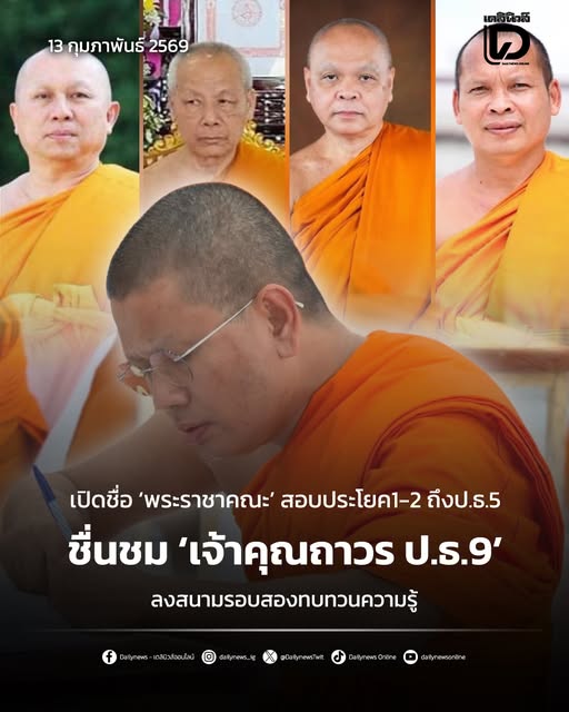 เพจเฟซบุ๊ก The Next Pali ได้เผยแพร่ข้อมูลพระราชาคณะ ที่ลงสนามสอบบาลีสนามหลวง ครั้งที่ 1 ครั้งหลัง ประจำปี 2569 ในระดับชั้นประโยค1-2 ถึงประโยค เปรียญธรรม (ป.ธ.) 5