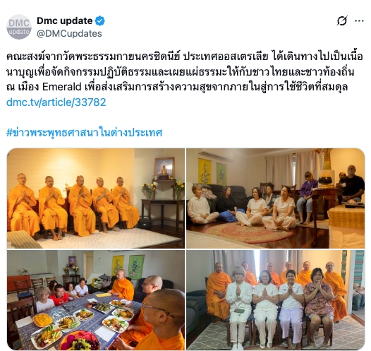 คณะสงฆ์จากวัดพระธรรมกายนครซิดนีย์ ประเทศออสเตรเลีย ได้เดินทางไปเป็นเนื้อนาบุญเพื่อจัดกิจกรรมปฏิบัติธรรมและเผยแผ่ธรรมะให้กับชาวไทยและชาวท้องถิ่น ณ เมือง Emerald