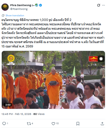 อนุโมทนาบุญ พิธีตักบาตรพระ 1,000 รูป เมืองตรัง ปีที่ 2