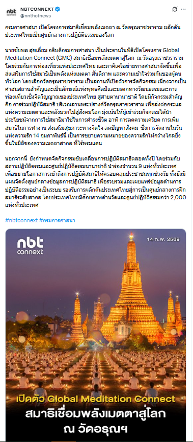 กรมการศาสนา เปิดโครงการสมาธิเชื่อมพลังเมตตา ณ วัดอรุณราชวราราม