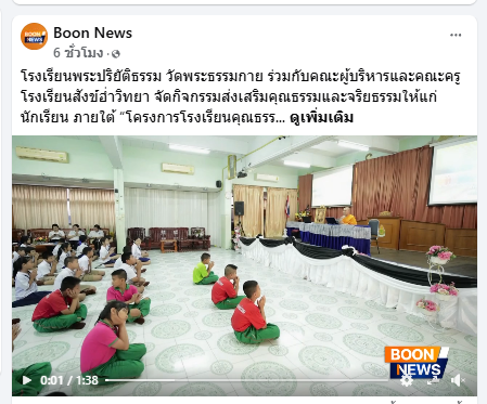โรงเรียนพระปริยัติธรรม วัดพระธรรมกาย ร่วมกับคณะผู้บริหารและคณะครู โรงเรียนสังข์อ่ำวิทยา จัดกิจกรรมส่งเสริมคุณธรรมและจริยธรรมให้แก่นักเรีย