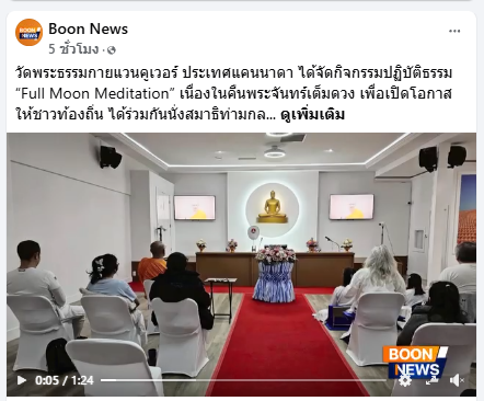วัดพระธรรมกายแวนคูเวอร์ ประเทศแคนนาดา ได้จัดกิจกรรมปฏิบัติธรรม Full Moon Meditation”