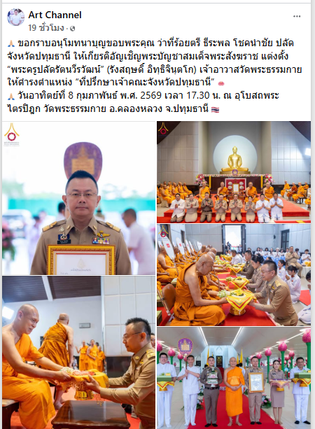 ขอกราบอนุโมทนาบุญขอบพระคุณ ว่าที่ร้อยตรี ธีระพล โชคนำชัย ปลัดจังหวัดปทุมธานี ให้เกียรติอัญเชิญพระบัญชาสมเด็จพระสังฆราช แต่งตั้ง พระครูปลัดรัตนวีรวัฒน์ (รังสฤษดิ์ อิทฺธิจินฺตโก) เจ้าอาวาสวัดพระธรรมกาย