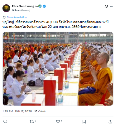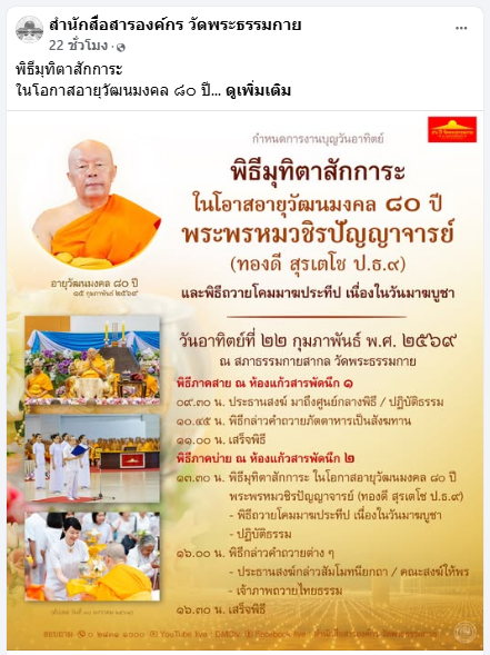 ญใหญ่ ! พิธีถวายมหาสังฆทาน 40,000 วัดทั่วไทย ฉลองอายุวัฒนมงคล 82 ปี หลวงพ่อธัมมชโย วันคุ้มครองโลก