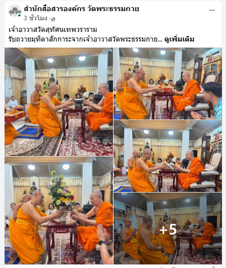เจ้าอาวาสวัดสุทัศนเทพวราราม รับถวายมุทิตาสักการะจากเจ้าอาวาสวัดพระธรรมกาย