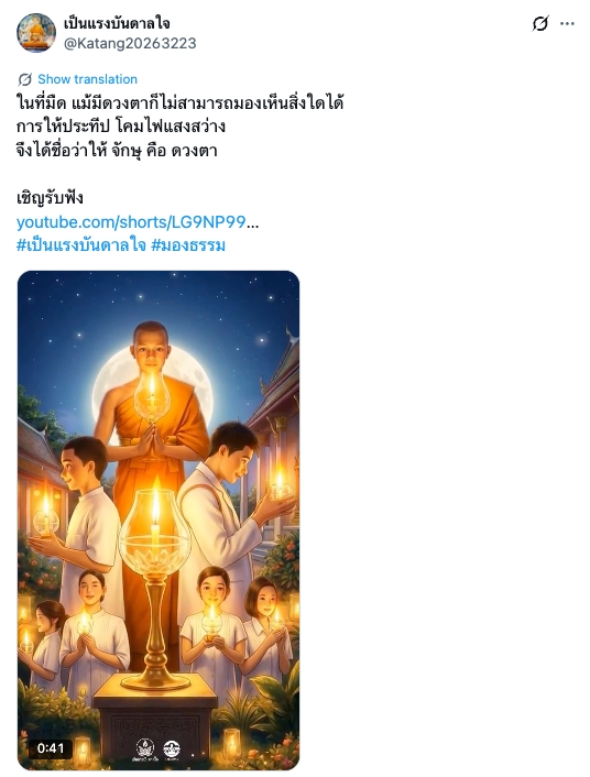 ในที่มืด แม้มีดวงตาก็ไม่สามารถมองเห็นสิ่งใดได้ การให้ประทีป โคมไฟแสงสว่าง จึงได้ชื่อว่าให้ จักษุ คือ ดวงตา