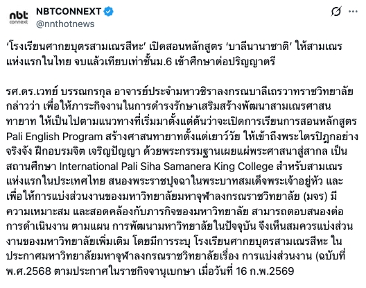โรงเรียนศากยบุตรสามเณรสีหะ เปิดสอนหลักสูตร ‘บาลีนานาชาติ ให้สามเณรแห่งแรกในไทย จบแล้วเทียบเท่าชั้นม.6 เข้าศึกษาต่อปริญญาตรี