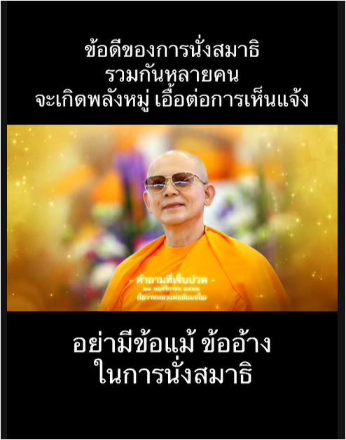 ข้อดีของการนั่งสมาธิรวมกันหลายคน จะเกิดพลังหมู่เอื้อต่อการเห็นแจ้ง