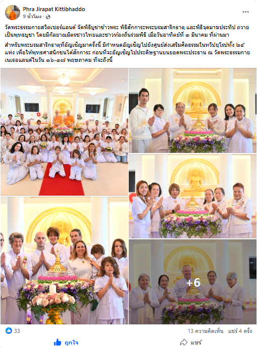 วัดพระธรรมกายสวิตเซอร์แลนด์ จัดพิธีบูชาข้าวพระ พิธีสักการะพระบรมสารีกธาตุ และพิธีจุดมาฆประทีป ถวายเป็นพุทธบูชา