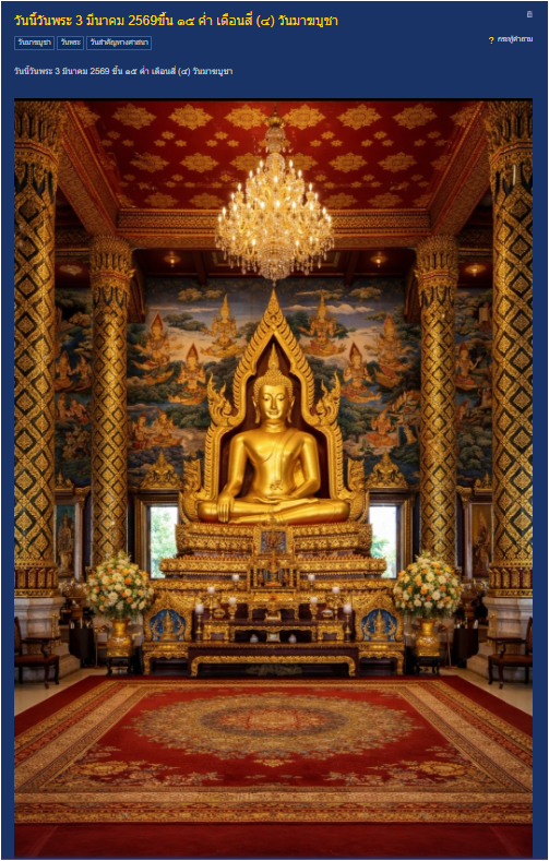 วันนี้วันพระ 3 มีนาคม 2569ขึ้น ๑๕ ค่ำ เดือนสี่ (๔) วันมาฆบูชา