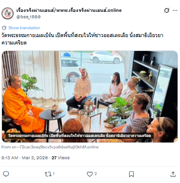 วัดพระธรรมกายเมลเบิร์น เปิดพื้นที่สงบใจให้ชาวออสเตรเลีย นั่งสมาธิเยียวยาความเครียด