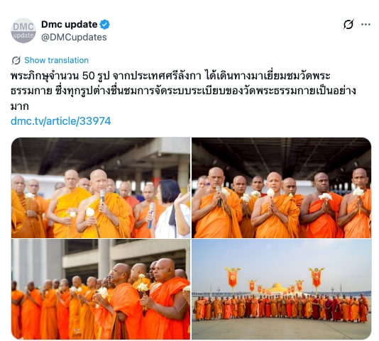 พระภิกษุจำนวน 50 รูป จากประเทศศรีลังกา ได้เดินทางมาเยี่ยมชมวัดพระธรรมกาย