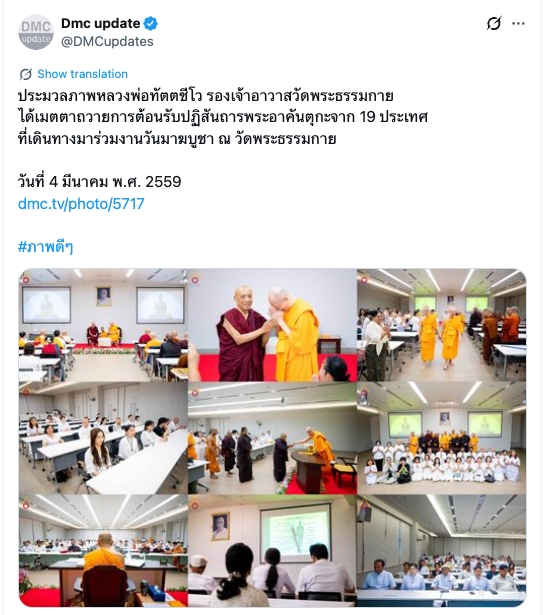 หลวงพ่อทัตตชีโว ได้เมตตาถวายการต้อนรับปฏิสันถารพระอาคันตุกะจาก 19 ประเทศ ที่เดินทางมาร่วมงานวันมาฆบูชา