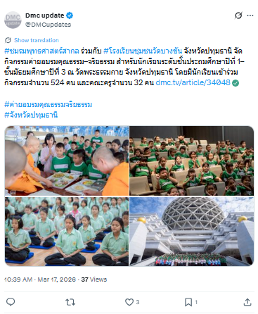 ชมรมพุทธศาสตร์สากล ร่วมกับโรงเรียนชุมชนวัดบางขัน จังหวัดปทุมธานี จัดกิจกรรมค่ายอบรมคุณธรรม–จริยธรรม สำหรับนักเรียนระดับชั้นประถมศึกษาปีที่ 1– ชั้นมัธยมศึกษาปีที่ 3 ณ วัดพระธรรมกาย