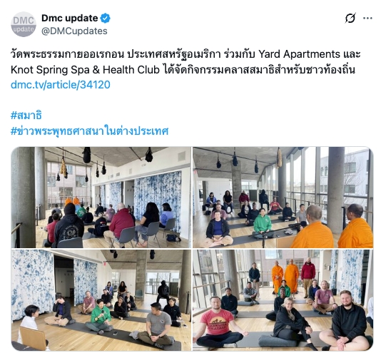 วัดพระธรรมกายออเรกอน ประเทศสหรัฐอเมริกา ร่วมกับ Yard Apartments และ Knot Spring Spa & Health Club ได้จัดกิจกรรมคลาสสมาธิสำหรับชาวท้องถิ่น