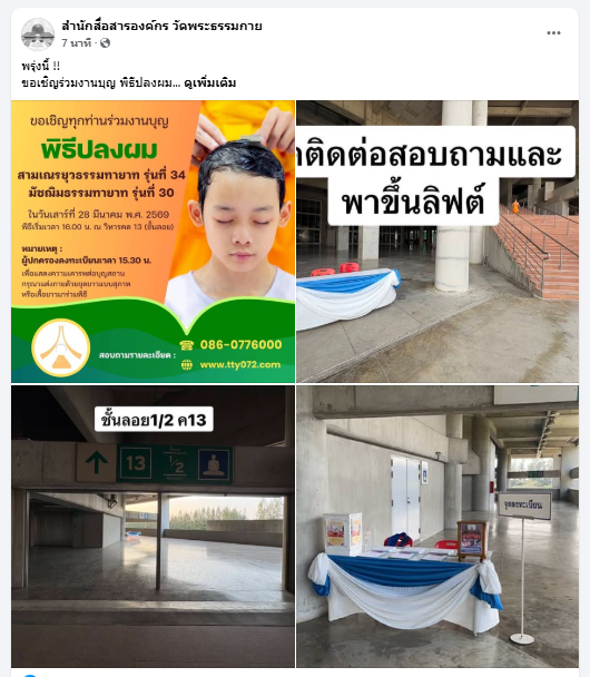 พรุ่งนี้ !! ขอเชิญร่วมงานบุญ พิธีปลงผม สามเณรยุวธรรมทายาท รุ่นที 34 มัชฌิมธรรมทายาท รุ่นที่ 30