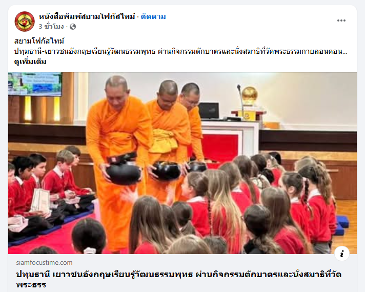 ปทุมธานี-เยาวชนอังกฤษเรียนรู้วัฒนธรรมพุทธ ผ่านกิจกรรมตักบาตรและนั่งสมาธิที่วัดพระธรรมกายลอนดอน...