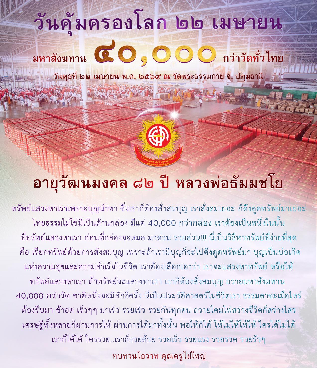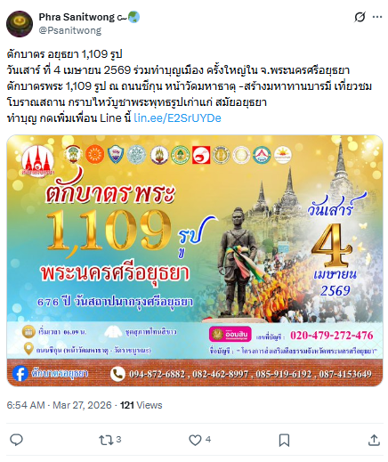 ตักบาตร อยุธยา 1,109 รูป วันเสาร์ ที่ 4 เมษายน 2569
