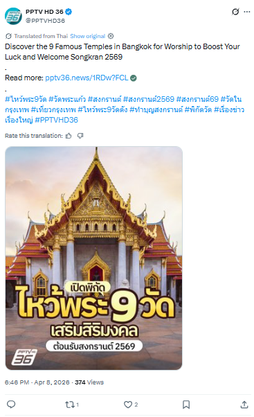 เปิดพิกัดไหว้พระ 9 วัดดังทั่วกรุงเทพฯ เสริมสิริมงคลต้อนรับสงกรานต์ 2569