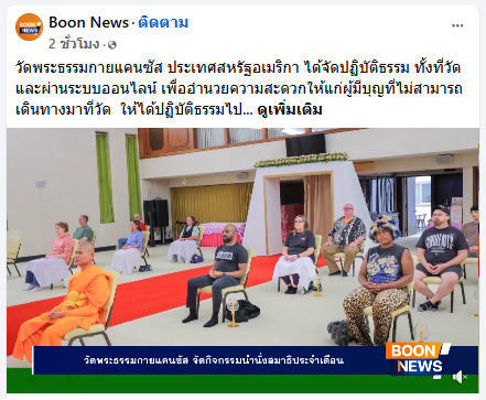 วัดพระธรรมกายแคนซัส ประเทศสหรัฐอเมริกา ได้จัดปฏิบัติธรรม ทั้งที่วัด และผ่านระบบออนไลน์