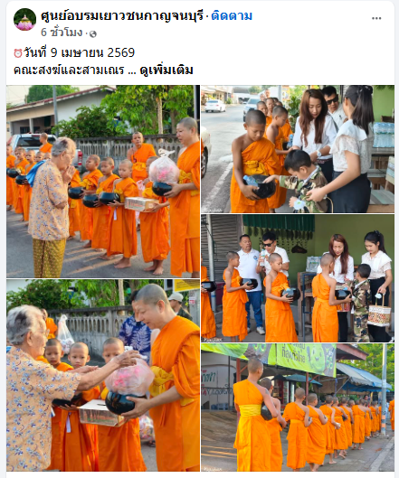 คณะสงฆ์และสามเณร จากศูนย์อบรมเยาวชนกาญจนบุรี ออกรับบิณฑบาตโปรดญาติโยม