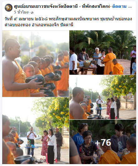 พระภิกษุสามเณรบิณฑบาตร ชุมชนบ้านบ่อทอง ตำลบบองทอง อำเภอหนองจิก ปัตตานี