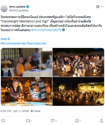 วัดพระธรรมกายซิลิคอนวัลเลย์ ประเทศสหรัฐอเมริกา ได้จัดกิจกรรมพิเศษ Candlelight Meditation and Vigil”