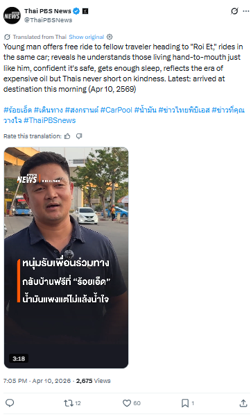 หนุ่มรับเพื่อนร่วมทาง กลับบ้านฟรีที่ ร้อยเอ็ด นั่งรถไปคันเดียวกัน เผย เข้าใจคนหาเช้ากินค่ำเหมือนกัน สะท้อนยุคน้ำมันแพง แต่คนไทยไม่แล้งน้ำใจ