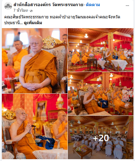 คณะศิษย์วัดพระธรรมกาย ทอดผ้าป่าอายุวัฒนมงคลเจ้าคณะจังหวัดปทุมธานี