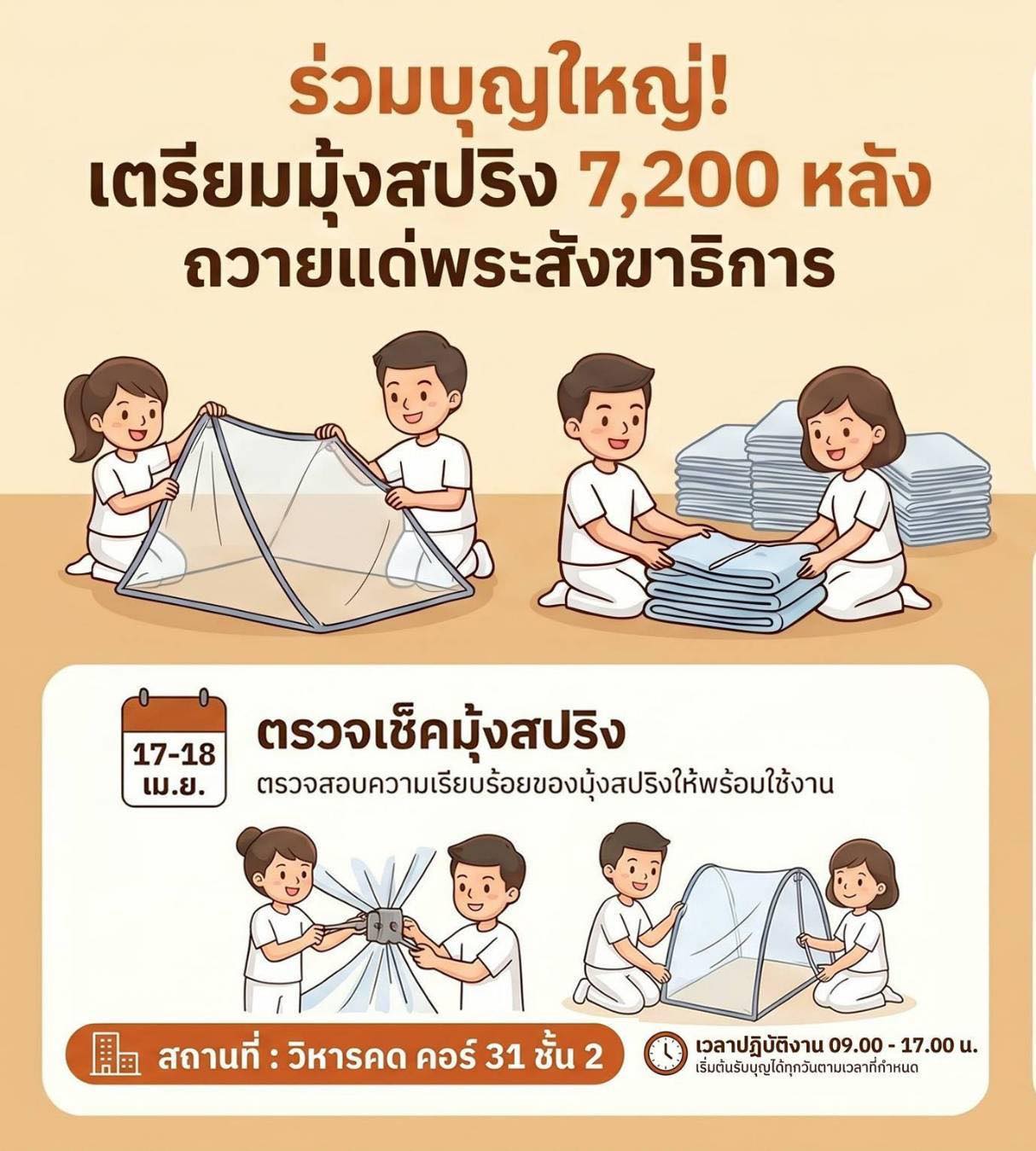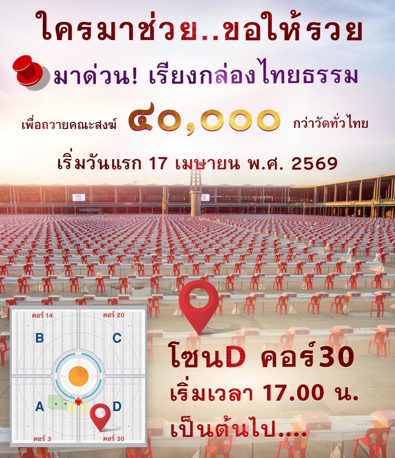 วันที่ 14 เมษายน พ.ศ.2569 การเตรียมแผ่นรองนั่ง เพื่องานถวายมหาสังฆทาน 40,000 กว่าวัดทั่วประเทศ วันคุ้มครองโลก 22 เมษายน พ.ศ.2569 วัดพระธรรมกาย