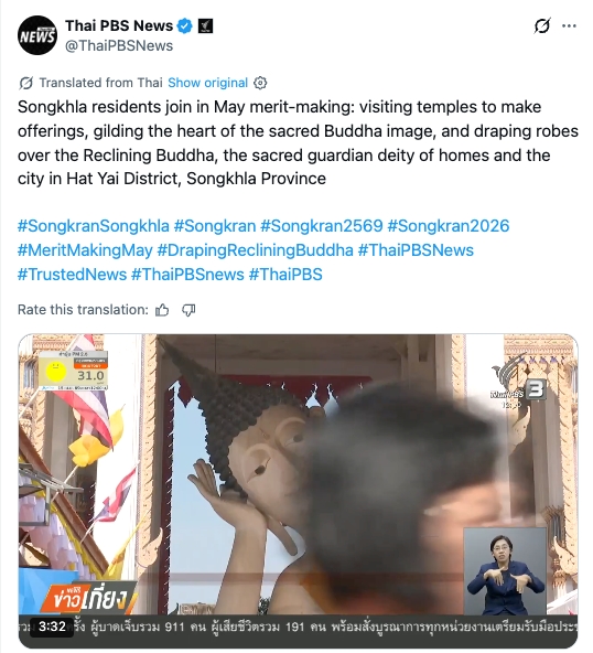 ชาวสงขลาร่วมทำบุญเดือน 5 เข้าวัดทำบุญ ปิดทองหัวใจองค์พระและห่มผ้าพระนอน พระศักดิ์สิทธิ์คู่บ้านคู่เมือง