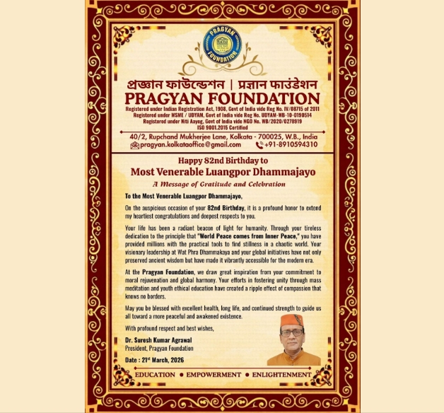 สารแห่งความกตัญญูและการเฉลิมฉลอง จาก มูลนิธิปรัชญาน (PRAGYAN FOUNDATION)