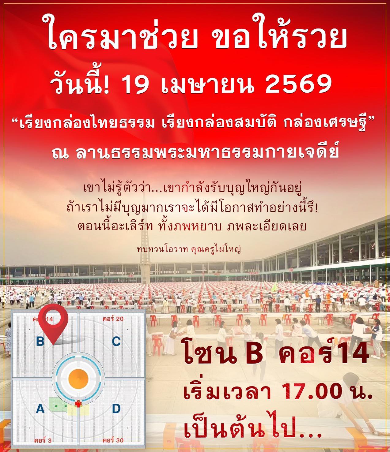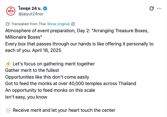 บรรยากาศเตรียมงาน วันที่ 2 เรียงกล่องสมบัติ กล่องเศรษฐี ทุกกล่องที่ผ่านมือเรา เสมือนได้ถวายเองกับมือของทุกท่านเลย 18 เมษายน 2569