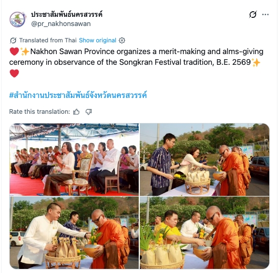 จังหวัดนครสวรรค์ จัดพิธีทำบุญตักบาตร เนื่องในประเพณีวันสงกรานต์