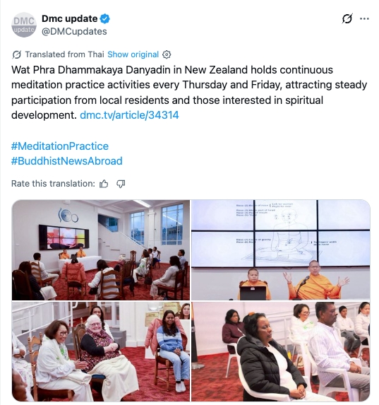 วัดพระธรรมกายดะนีดิน ประเทศนิวซีแลนด์ จัดกิจกรรมปฏิบัติธรรมอย่างต่อเนื่องทุกวันพฤหัสบดีและวันศุกร์