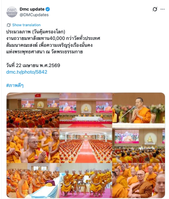 ภาคีเครือข่ายบวร จังหวัดปทุมธานี ร่วมนั่งสมาธิ–ถวายมหาสังฆทาน 40,000 กว่าวัดทั่วไทย เนื่องในวันคุ้มครองโลก ณ วัดพระธรรมกาย